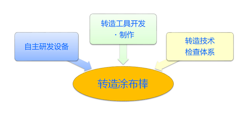 与涂布行业中广泛使用的钢丝线棒(在光棒上缠绕上钢丝)不同,是通过转造加工在光棒上形成精密的槽形的涂工棒。