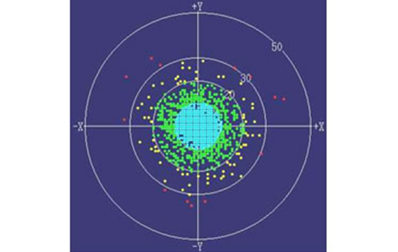 | 基板品质异常 | 因基材内部树脂、玻纤之不均一性,引发偏孔 | 确认基板品质 (例)用孔位测定机的精度确认画面可确认基板的不均一状态→明显的条纹状等 |