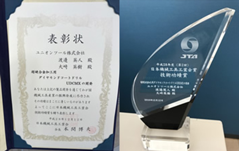这次,我们凭借“开发用于硬质合金加工的钻石涂层钻头UDCMX”获得了2016年日本工具工业协会技术成就奖。