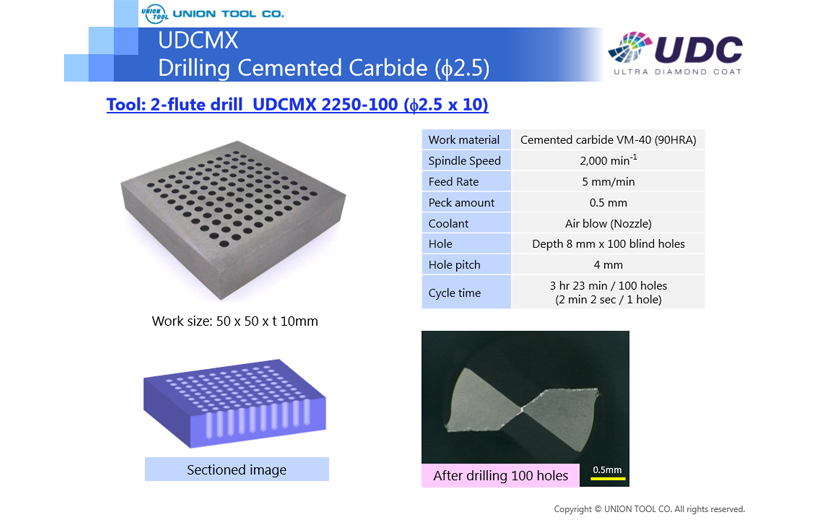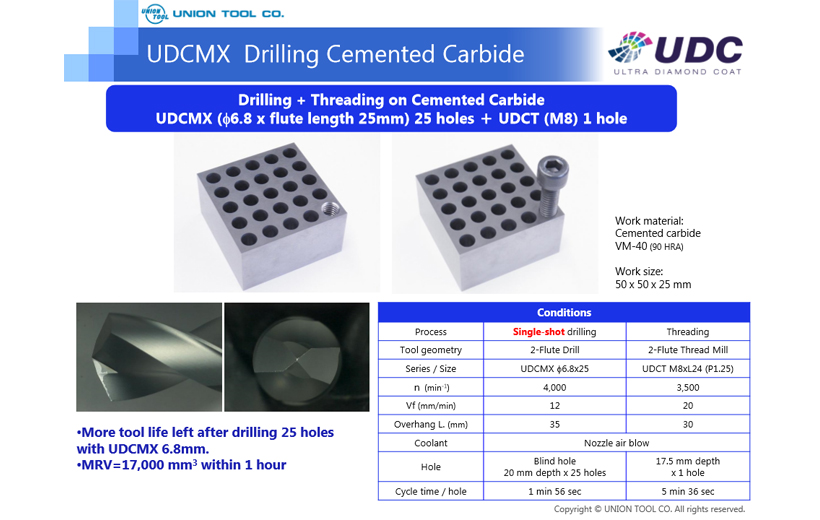 UDCMX Cemented Carbide (VM-40) 600 Holes Drilling