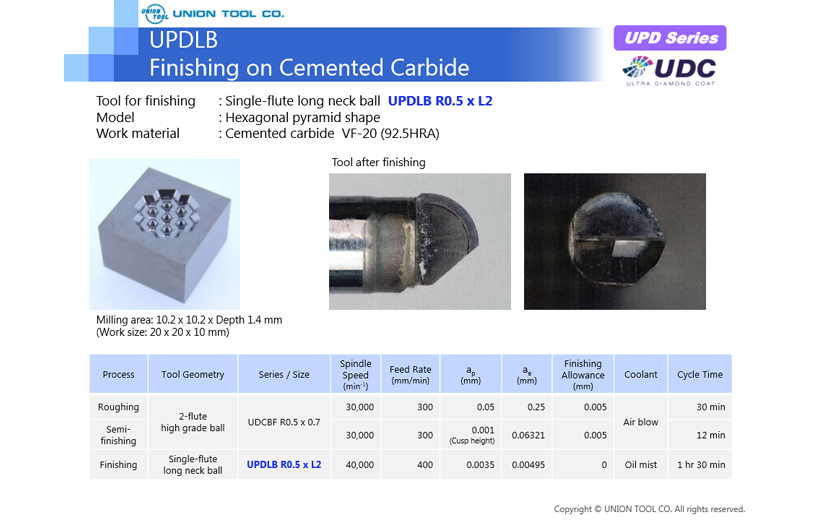 UPDLB Cemented Carbide (VF-20) Finishing of Hexagonal Pyramid