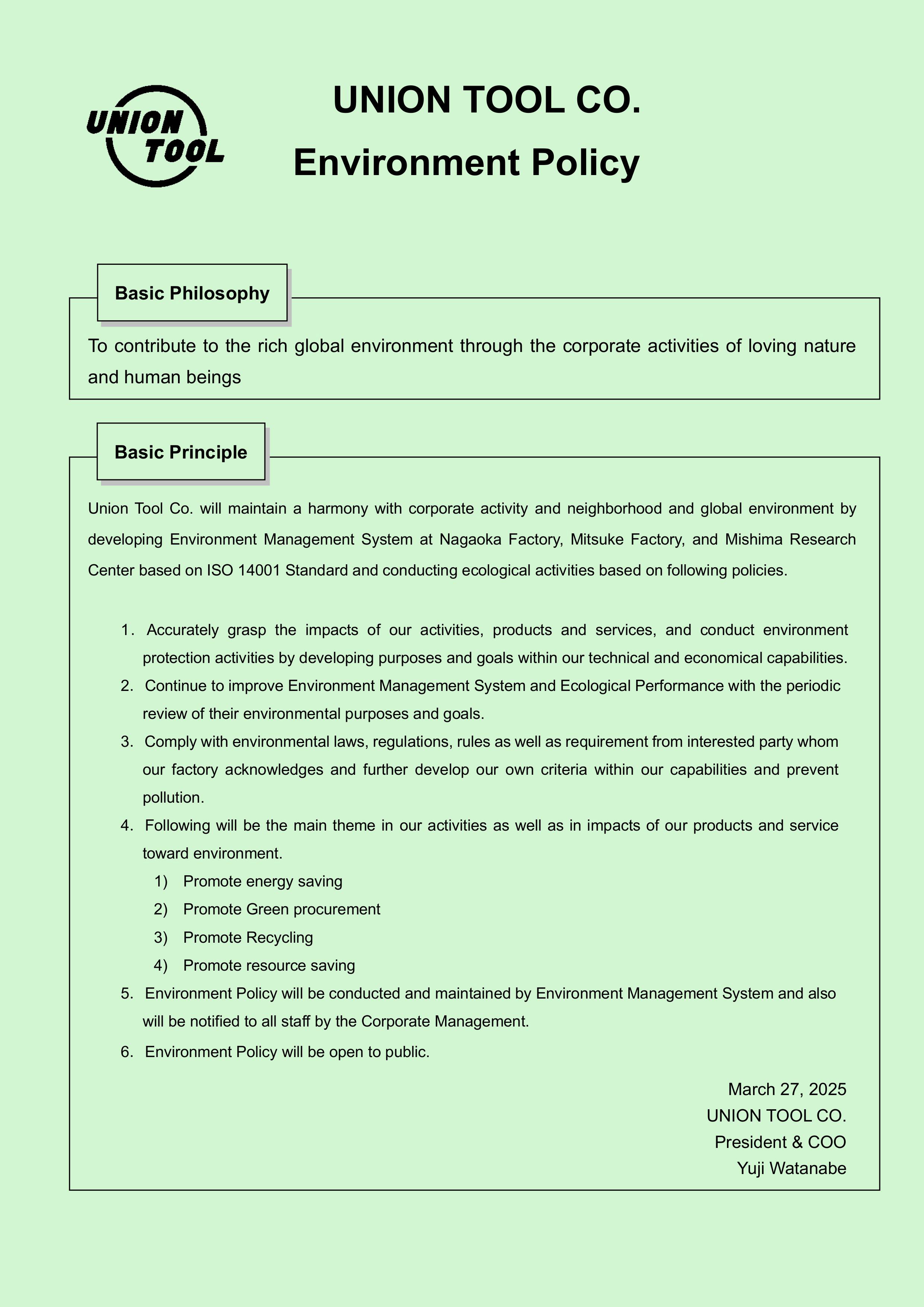 | 1 | Energy Saving | Efficient energy use | 1% reduction of energy consumption compared to FY2024 through improvement. |