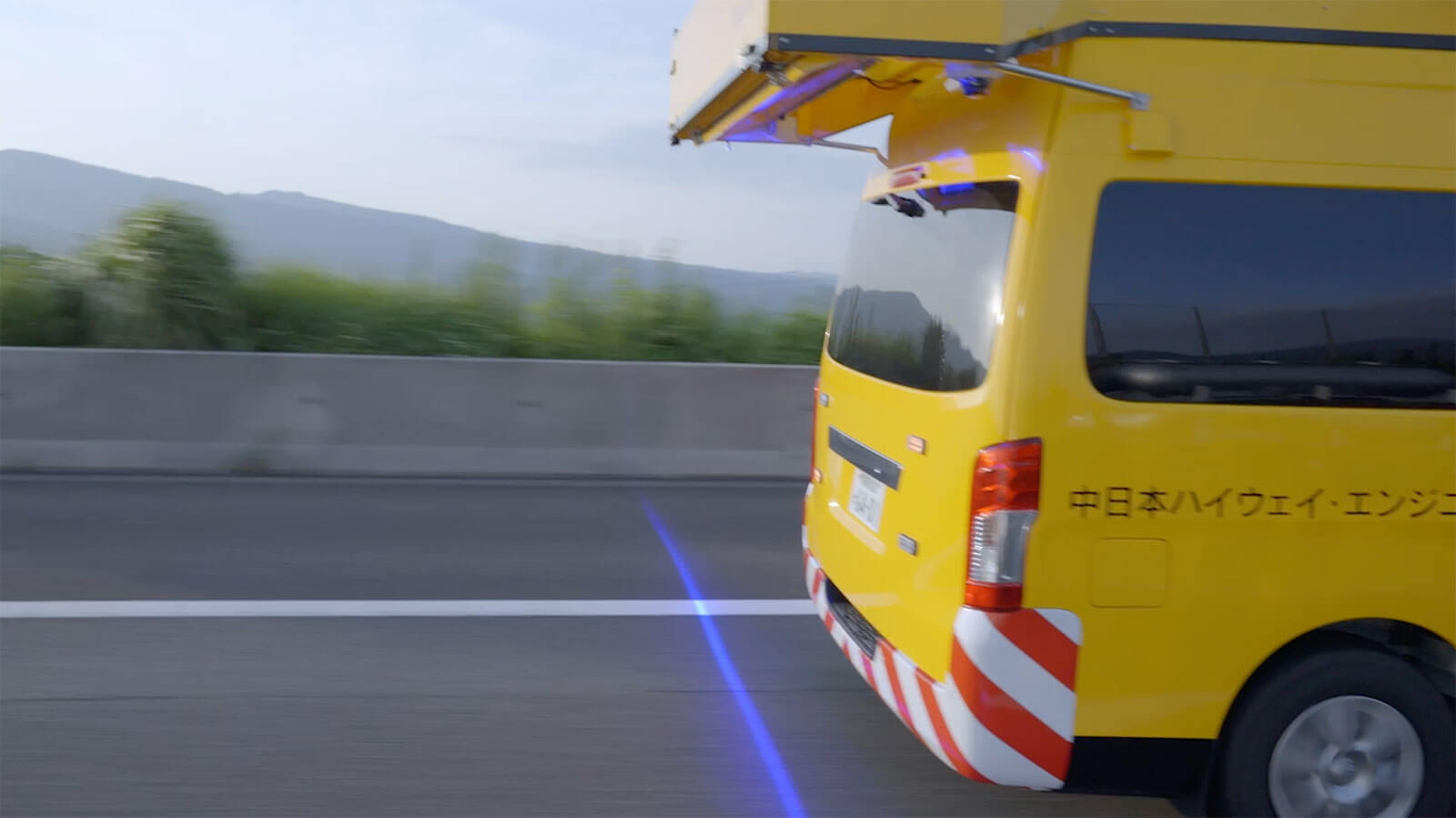 走行する一般車と同じスピードで、車間距離を保ちながら測定走行が可能。渋滞をさせることなく、安全な計測ができる