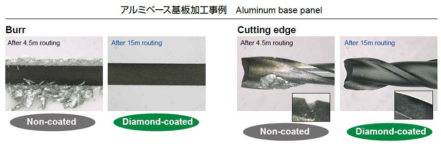 近年、アルミベース基板に用いられるケースが増加してきた4000系アルミの加工に対応したダイヤコートルーター「DCRSE」の加工事例を紹介いたします。