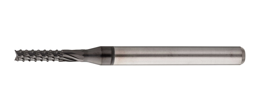 多数の右ねじれ刃を持ち、切り粉をせん断する細かいチップブレーカーが付いています。 外形加工に適しており、バリ低減にも効果を発揮します。
