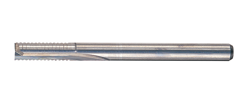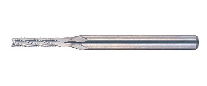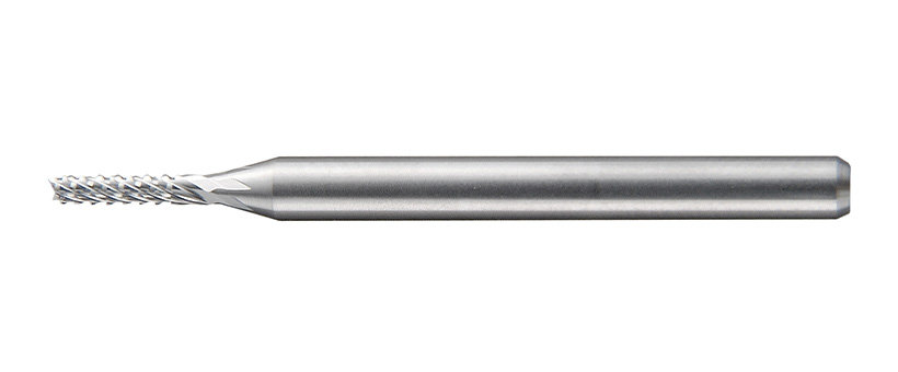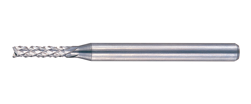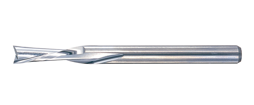 最も一般的な電子回路基板の外形加工用ルーターです。 ダイヤモンドカット形状の切れ刃を持ち、切り粉の排出性を重視した長寿命型設計です。