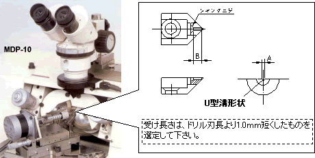 断面形状が半球径の刃受けです。1つの刃受けで受けられるサイズは1種類に限定されますが、芯高が一定である為、ほぼ理想的な逃げ面角度が得られます。