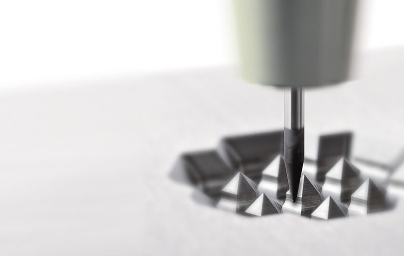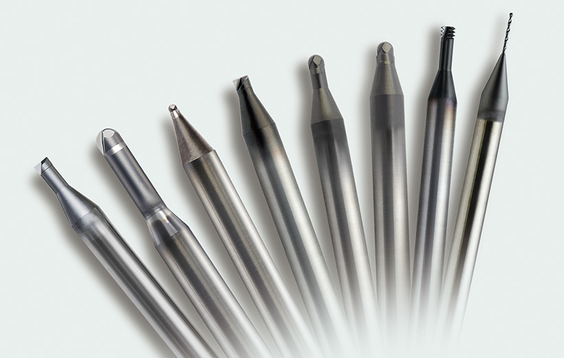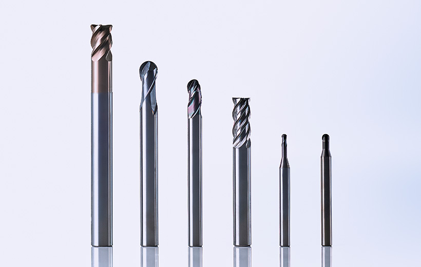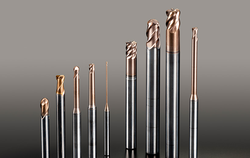 当社エンドミル ユニマックスシリーズは、用途に合わせた多彩な製品を外径φ0.06mmからφ20mmまで幅広くラインナップしております。主に超硬合金を素材に使用し、超硬エンドミルとして、とりわけ要求精度の高いφ12mm以下のサイズにおいて、その性能・品質・ラインナップに定評がございます。ユニマックスシリーズは、独自開発の自社製生産設備と測定機器により高い寸法精度を誇り、自社開発プログラムの研削による独自刃形状と、多種の材質向けに開発された各種コーティング膜は、これまで不可能であった超硬合金の直彫り加工を実現するなど、高い性能を発揮致します。