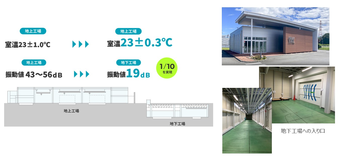 金型部品は地下11mの地下工場で製作。 外気の影響を受けないため、