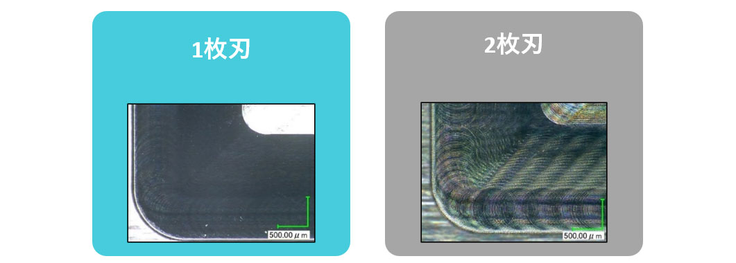 2枚刃に比べ、大幅に加工能率がUP!サイクルタイムの削減に貢献します。