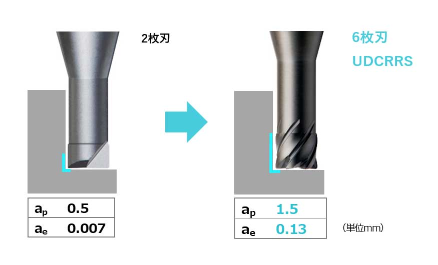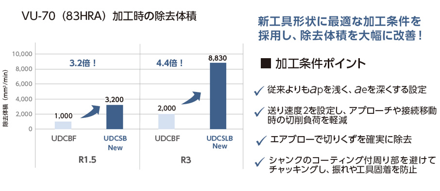 87HRA以下の高靭性超硬加工でも除去体積が格段にアップ