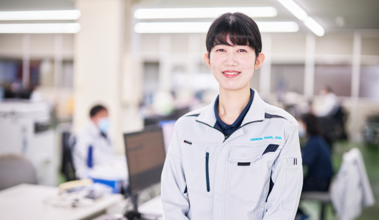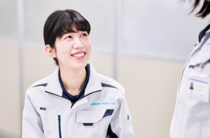 グローバル市場で活躍する企業で働きたいと考えていた私にとって、海外拠点があり世界中のお客様に貢献しているユニオンツールはとても魅力的でした。また、就職活動時の説明会で女性の先輩社員とお話し、将来ライフステージが変わっても柔軟に働けるイメージができたため、入社を決めました。