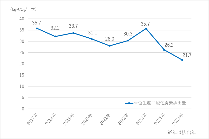 図2 単位生産二酸化炭素排出量(長岡工場)